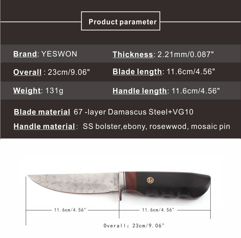 | Blade Materail: | 67-layer Damascus steel + VG10 |