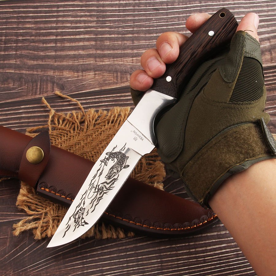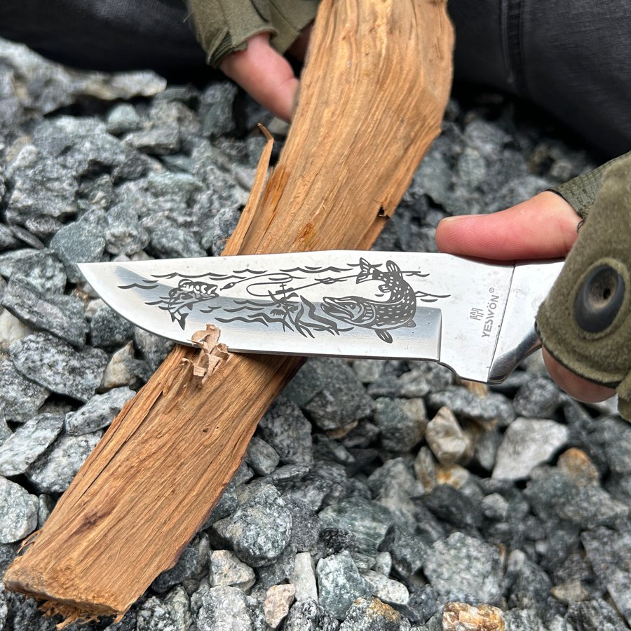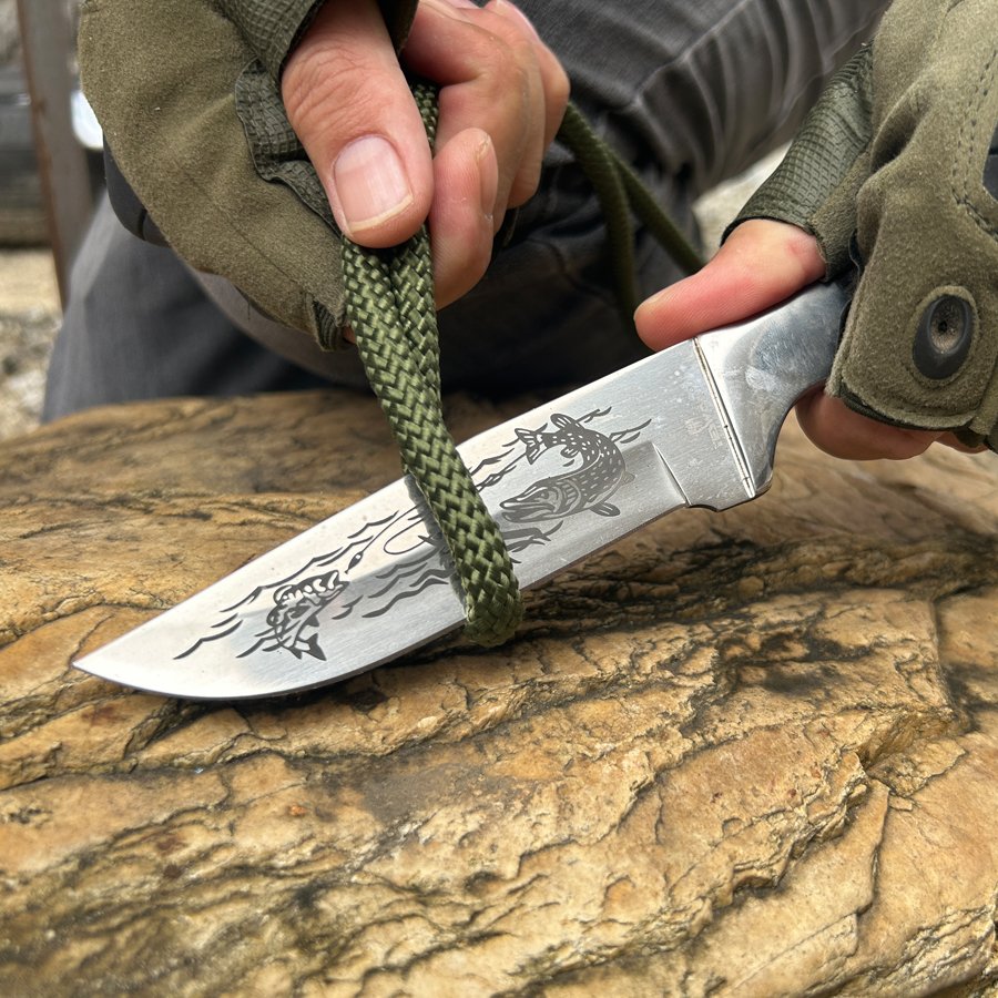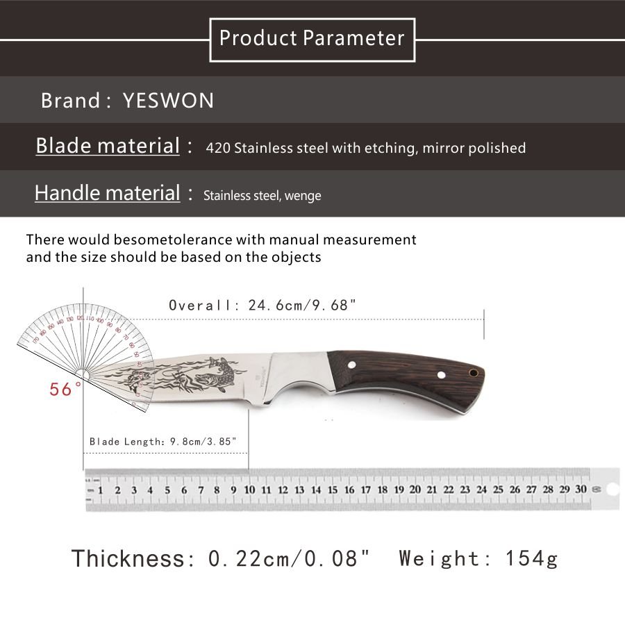 | Blade Material: | 420 Stainless steel with blacked finished and carving pattern, sanding polished |