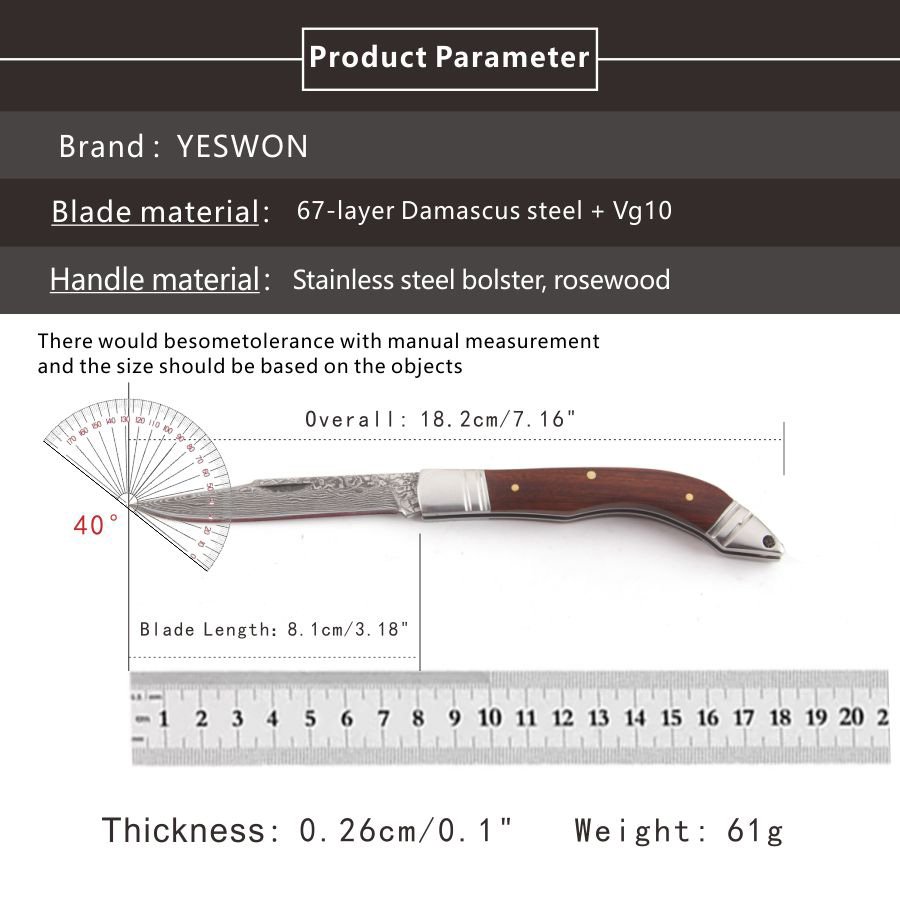 | Blade Material: | 67-layer Damascus steel + VG10 |