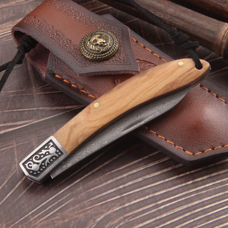 | Handle Material: | Stainless steel bolster with carving pattern, olive wood |