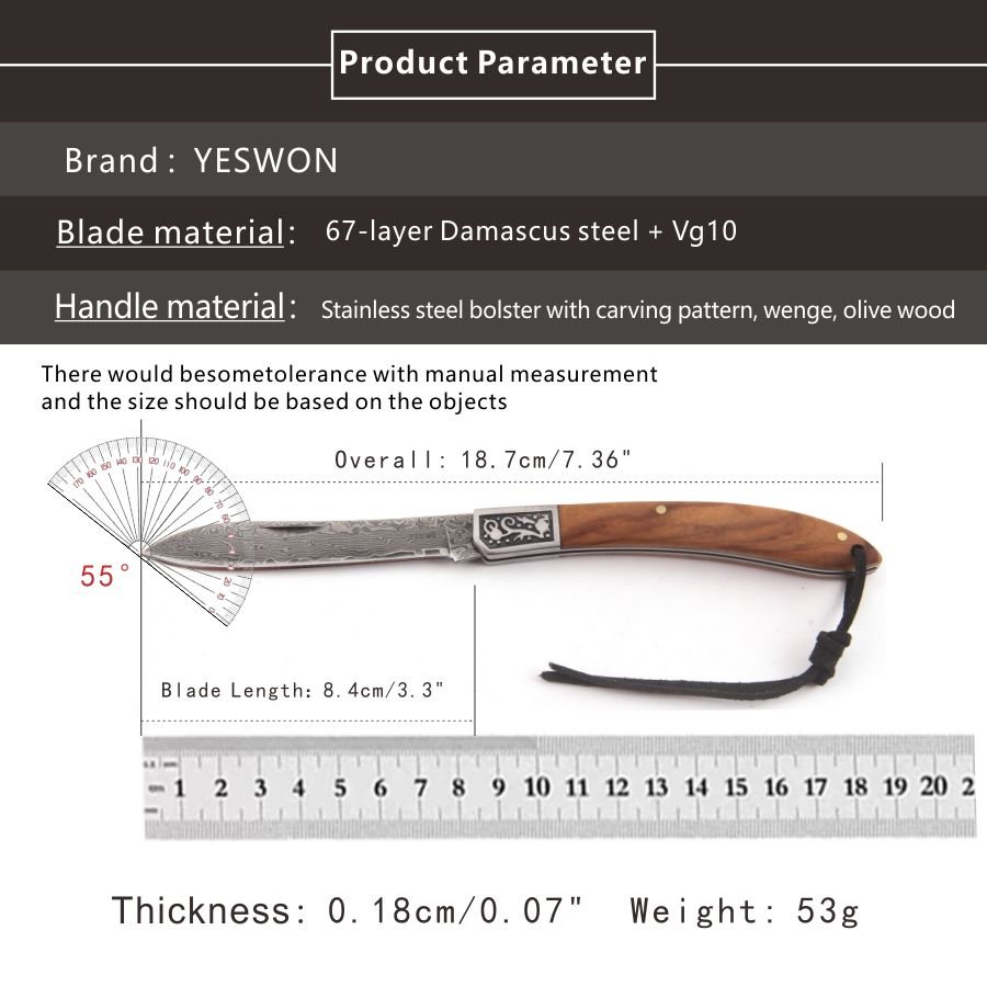 | Blade Material: | 67-layer Damascus steel + VG10 |