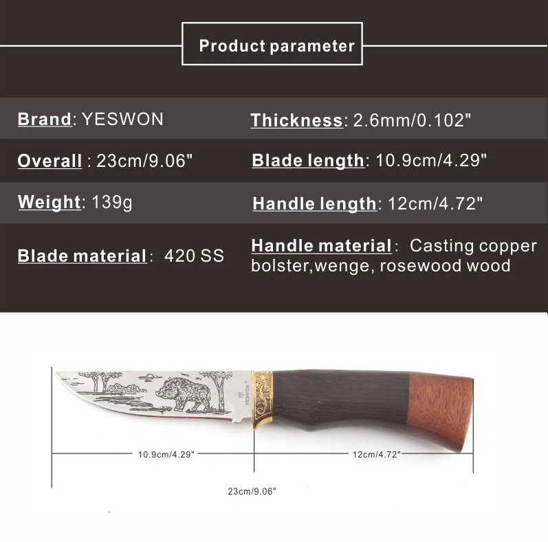 | Handle Materail: | Copper bolster with carving pattern,rosewood, wenge |