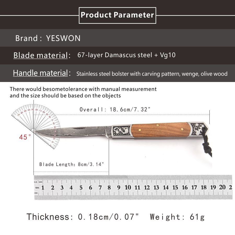 | Blade Material: | 67-layer Damascus steel + VG10 |