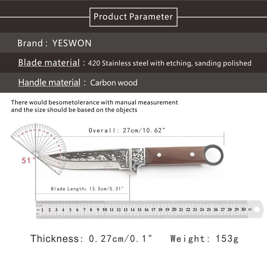 Blade Material: 420 Stainless steel with blacked finished and carving pattern, sanding polished