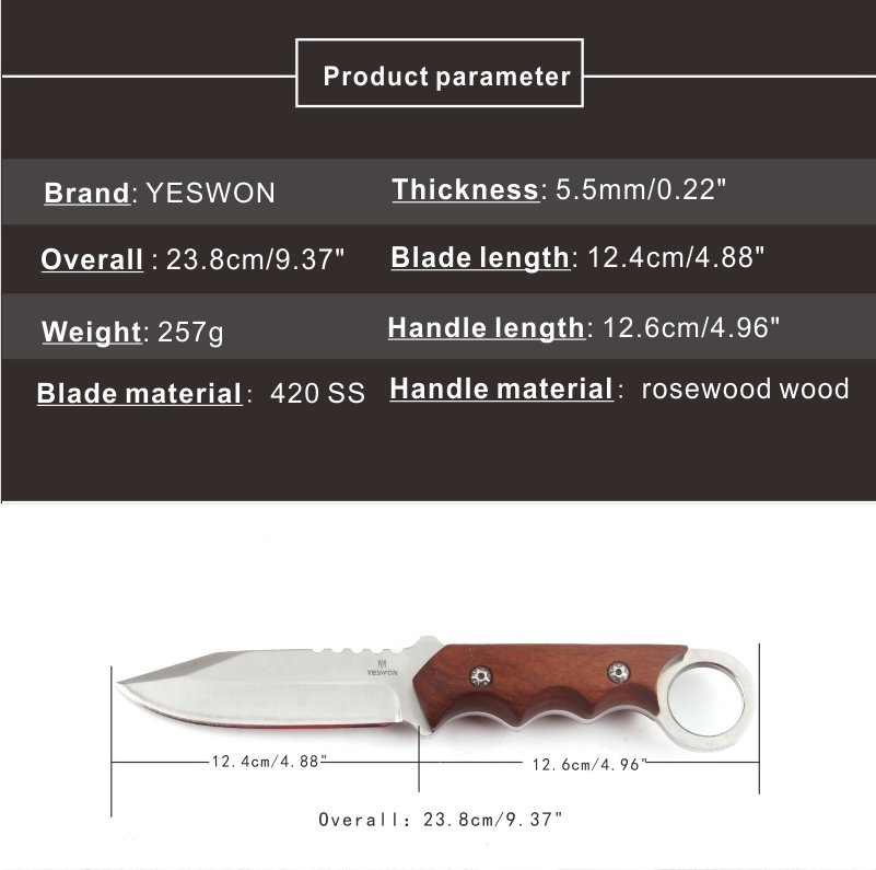 Full Tang Hunting Knife Heavy Duty Camping Knife Fixed Blade Knife High Quality With Leather Sheath