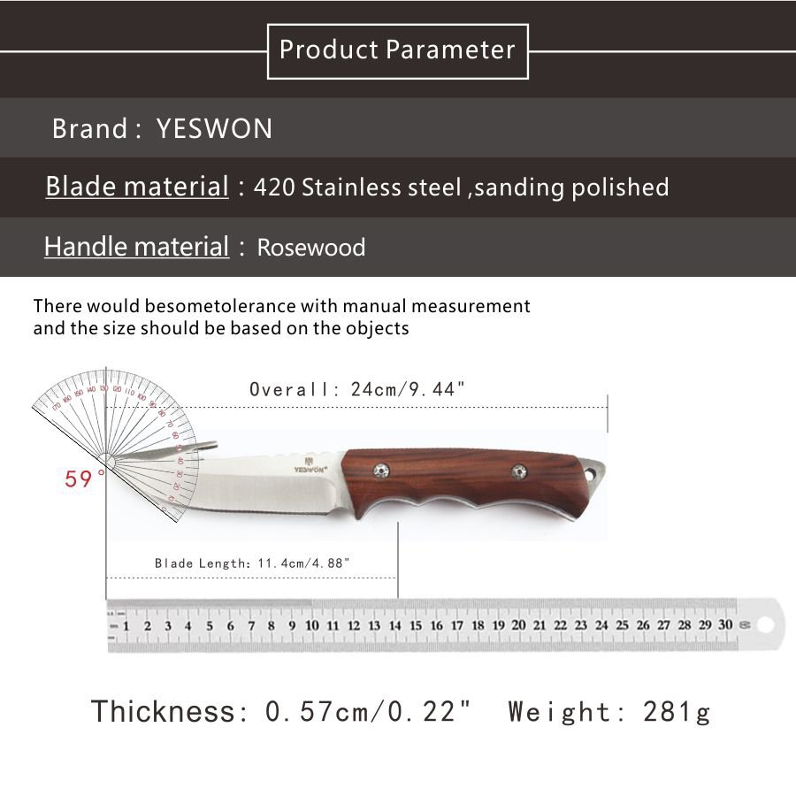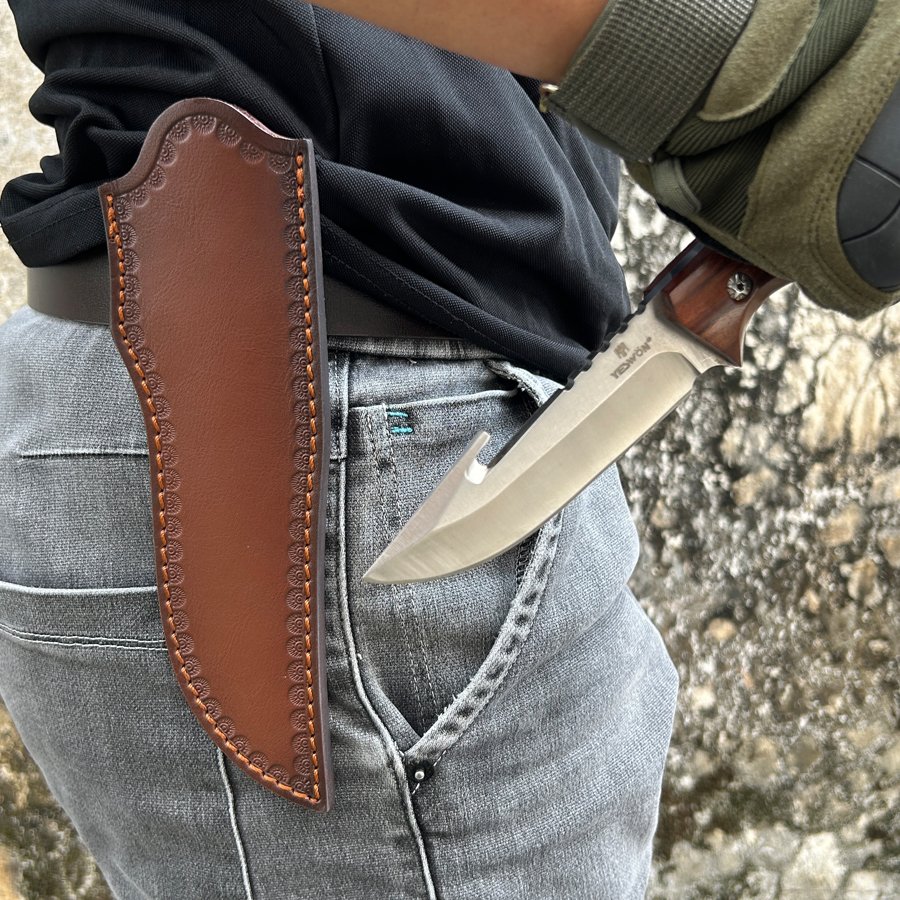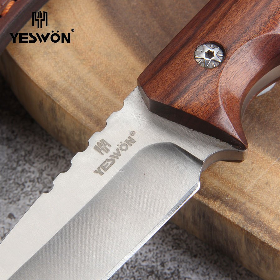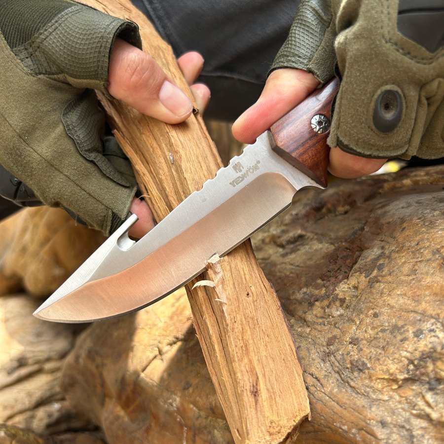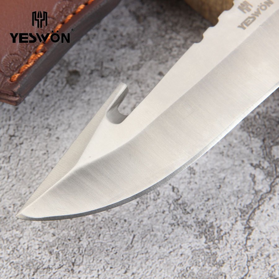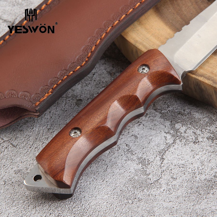 Full Tang Hunting Knife Heavy Duty Camping Knife Fixed Blade Knife High Quality With Leather Sheath