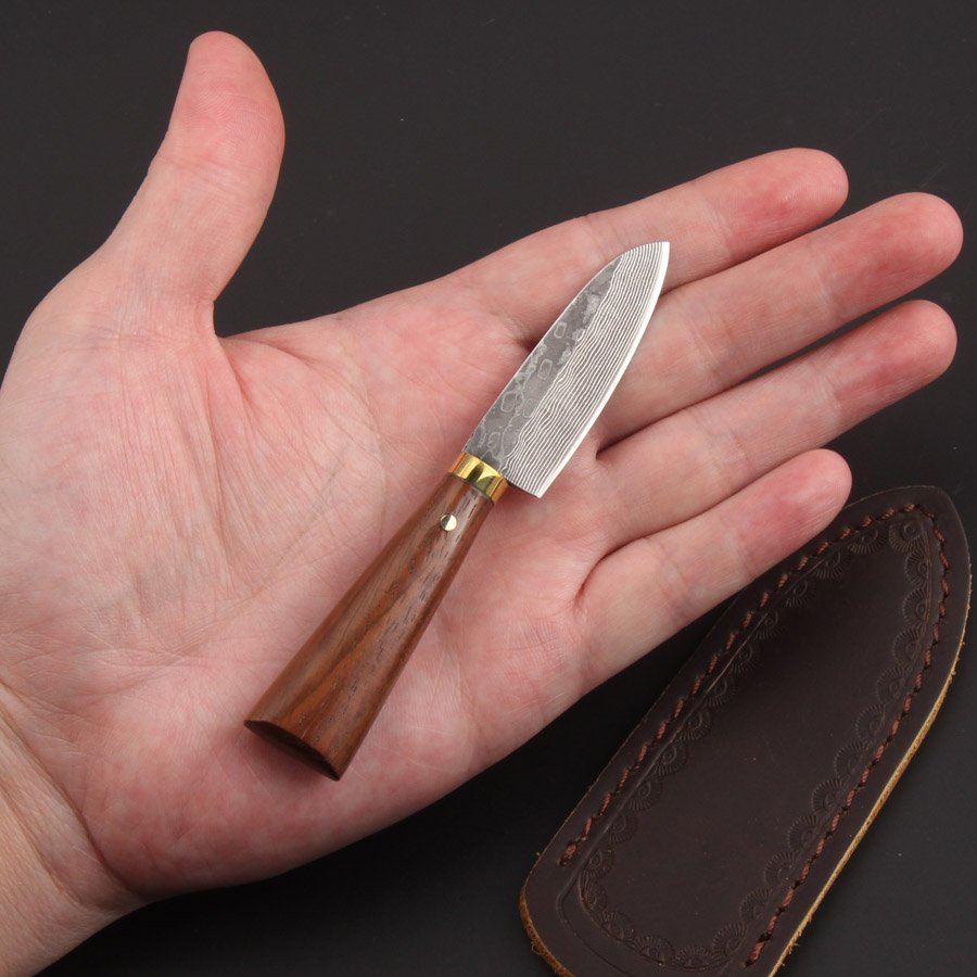 Mini Premium Damascus Mini Outdoor Knife Edc Tool Small Fixed Hunting Knife Perfect For Camping Gift