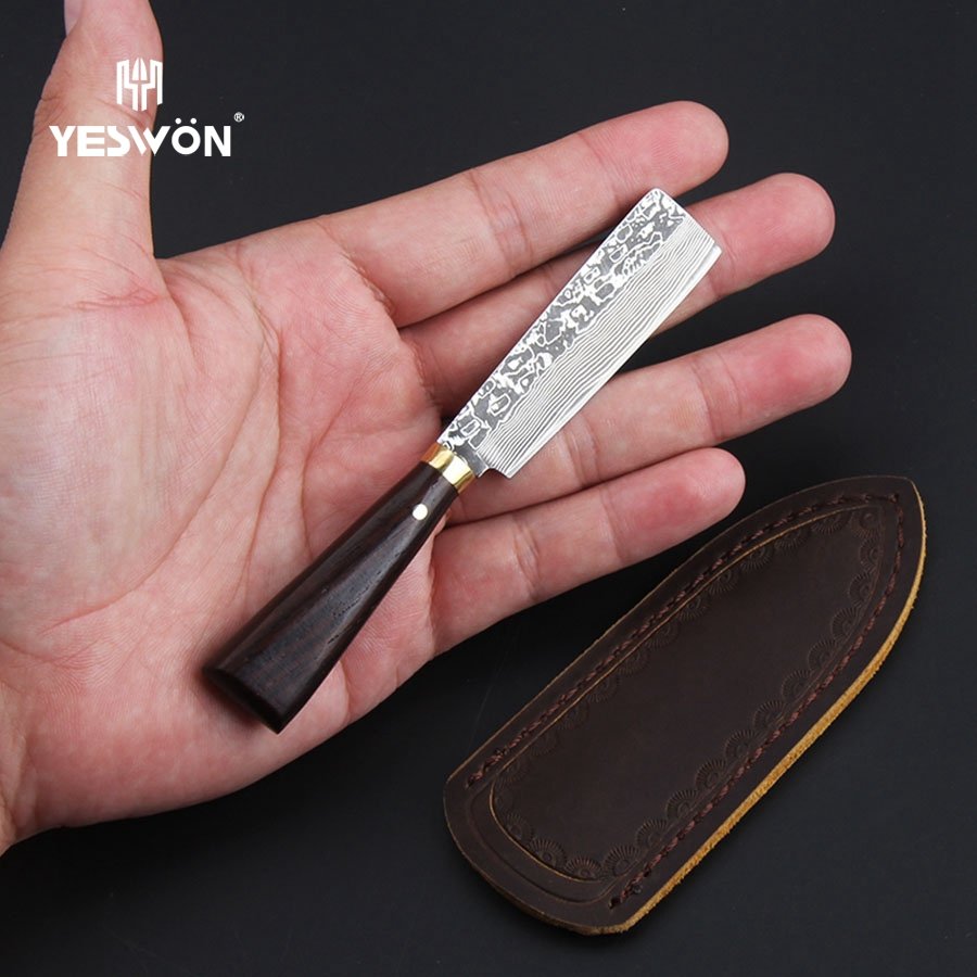 Mini Premium Damascus Mini Outdoor Knife Edc Tool Small Fixed Hunting Knife Perfect For Camping Gift