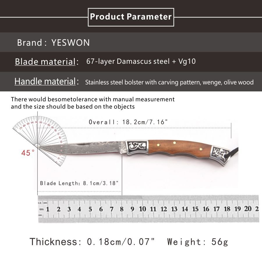 | Blade Material: | 67-layer Damascus steel + VG10 |